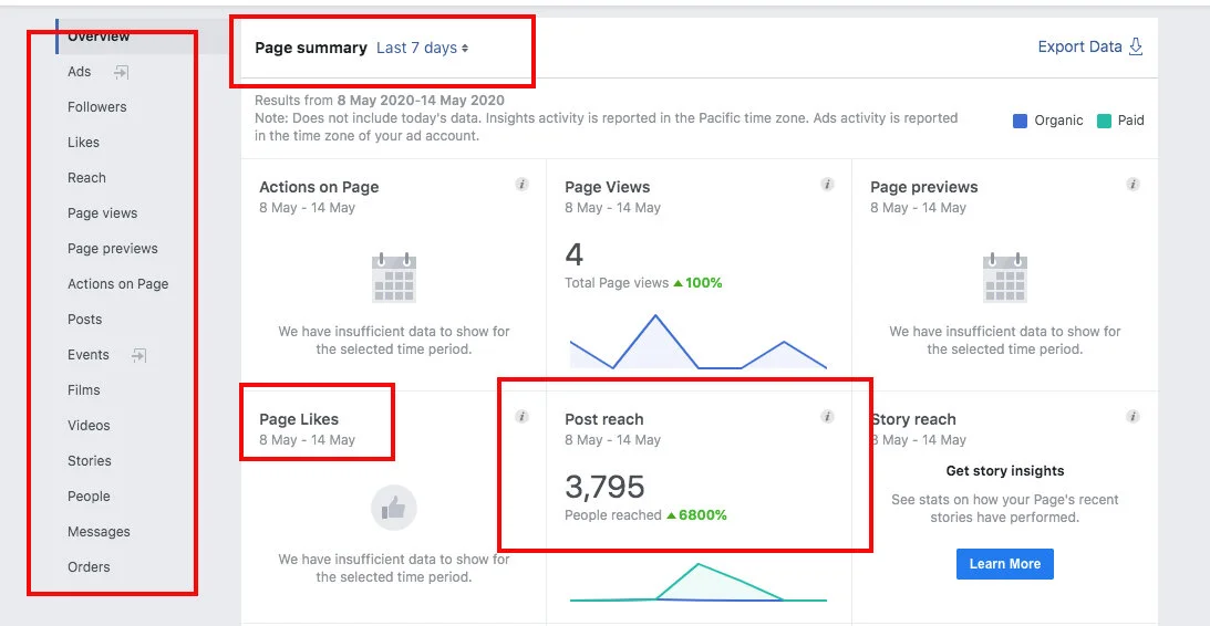 First of all Page Likes, now this will depend on a few factors. Facebook pages gain new likes when their posts are spread to users that don’t like or engage with the page. So for example, you share a post, a user comments tagging their friend, it shows up on both friends newsfeeds and 3 new people find your page and give it a like. All modes of people liking your page wherever they come from will be recorded, even those from paid Ad promotions.